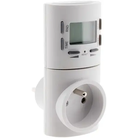 Ce programmateur digital à façade amovible permet de définir jusqu?à 8 cycles marche/arrêt de tous les appareils électriques et lumières d?une puissance maximale de 2300W. Il suffit d?enlever simplement la façade amovible pour faire une programmation horaire. Lorsque l?on replace la façade amovible sur le programmateur, la programmation se met en route.